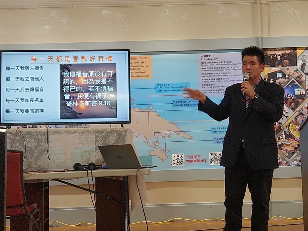 勞伯祥牧師主講第二堂主題信息,題為「宣教好時機:敢於夢想,製造時機」。思想詩篇126篇,詩人從不敢夢想(1節):當看見神的工作時,好像做夢的人,那時詩人與神的心意距離很遠,不敢夢想耶和華神會顧念被擄的以色列民;直到驚訝神的作為,開始敢於夢想(4節):進一步向神禱告,求神繼續工作,使更多被擄的人得以歸回;到最後敢於夢想、敢於圓夢(5-6節):「流淚撒種的,必歡呼收割!那帶種流淚出去的,必要歡歡樂樂地帶禾捆回來!」單單夢想並不足夠,也當有圓夢的渴望、圓夢的計劃。勞牧師分享自己的夢想:鼓舞青春,從宣教士學院建立藝術學院,以舞藝、演藝、畫藝等藝術來傳福音,也夢想建立有效幫助自閉症兒童的策略聯盟事工。求神紀念各人心中的夢想,使夢想成真。